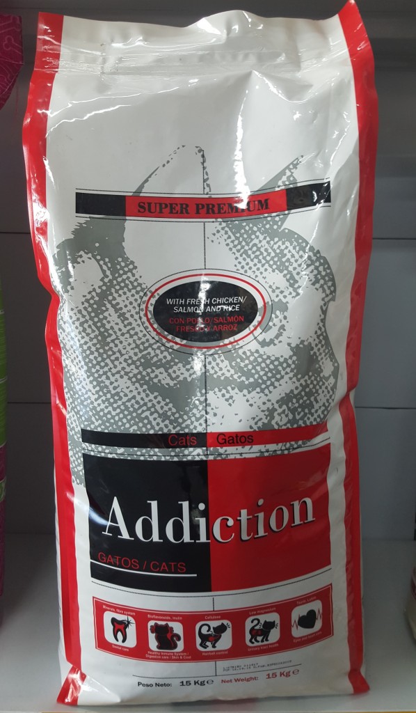 Pollo fresco (22%), arroz, Harina de arroz, gluten de maíz, proteínas deshidratadas de ave, grasa de pollo, levadura de cerveza, hidrolizado de higado, celulosa en polvo, pulpa de remolacha, aceite de pescado, sustancias minerales, cloruro potásico, cloruro sódico, pirofosfato, tetrasódico, taurina, luteina, extracto de citricos naturales ricos en bioflavonoides, L-lisina, DL-metionina, extracto de yucca shigeria, L-cartina. Con antioxidantes y conservantes autorizados por la U.E.
